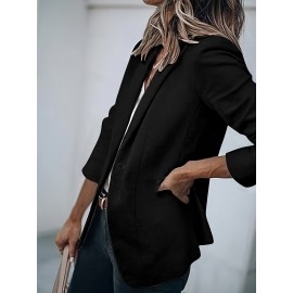 1点 レディース 無地 カジュアル ブレザー M9356 - ポリエステル 100% 長袖ジャケット、ポケット付き、ボタンレスプラケット、織物、春/秋用 レギュラーフィット、アウター | ミドルイースタンスタイル | スタイリッシュなポケット