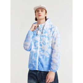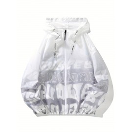 ファッショナブルなレタープリントフード付きジャケット - ウインドプroof、日焼け止めのアウトドア旅行ジャケット - ジッパークロージャーとポケット付き - 男女兼用 - カジュアルなアウトドアウェア | トレンディなカジュアルジャケット | 耐久性のある織物