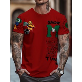 メンズ レッド グラフィックTシャツ「SHOW ME STATE」デザイン - カジュアル 半袖 クルーネック、ポリエステル混紡、洗濯機可、幾何学模様、オールシーズン着用、カジュアルウェア | グラフィックティー | 快適なフィット感