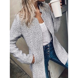 女性のカラーブロックポリエステルブレザー、カジュアルな長袖ニットファブリックジャケット、夏のゆったりとしたフィット感のボタンレスプラケット、100%ポリエステル120g/m² - レギュラー丈