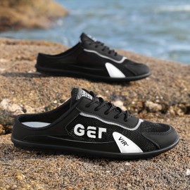 1 ペアのメンズスタイリッシュなブラックスリッポンスニーカー、「GER」&「VIR」ロゴ付き - カジュアルな集まり、ビーチ、パークウォークに最適 - レースアップ、EVAインソール、PVCソール、屋外用靴|スタイリッシュなスニーカー|EVAインソールシューズ